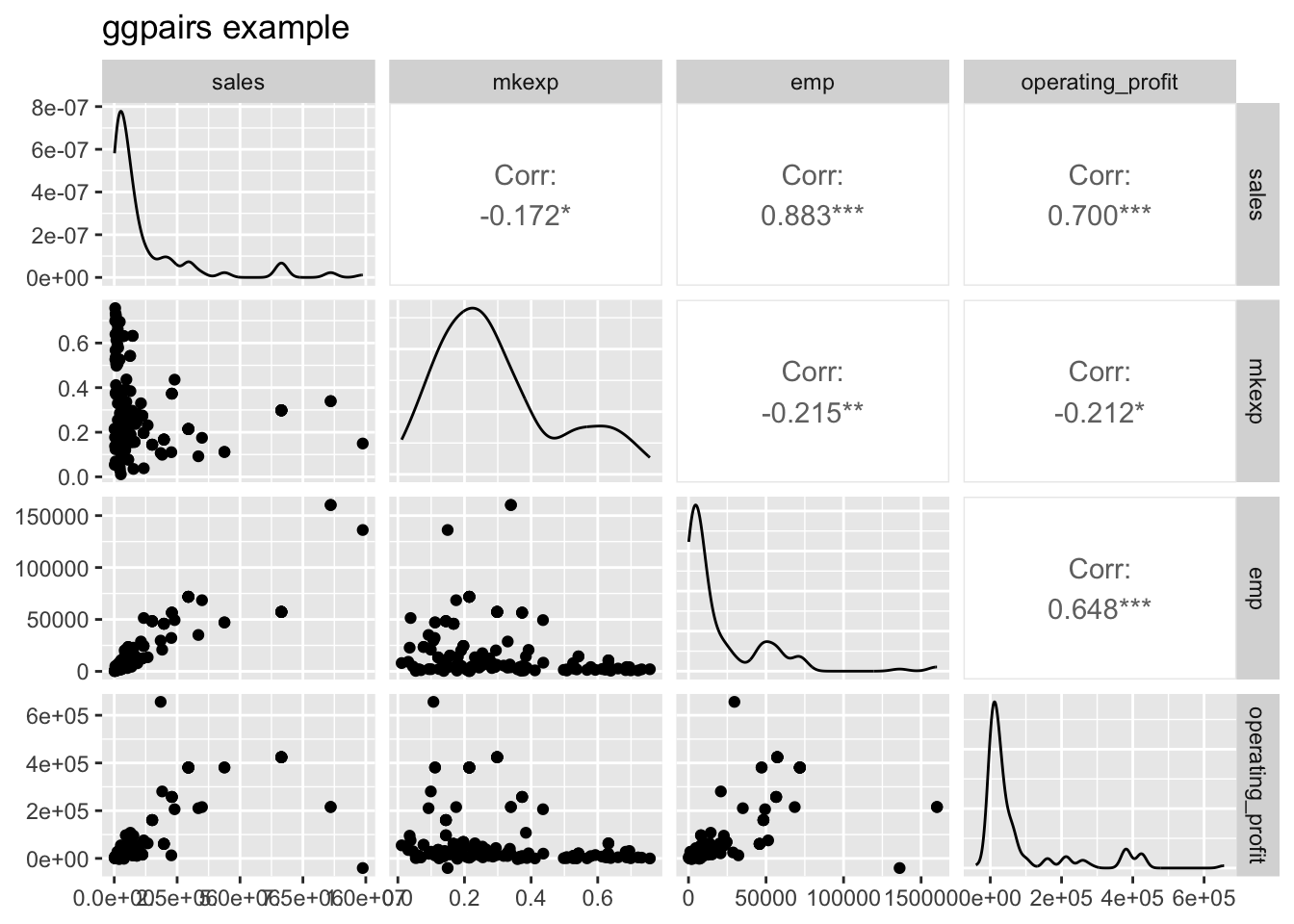 select(sales, mkexp, emp, operating_profit) %>%